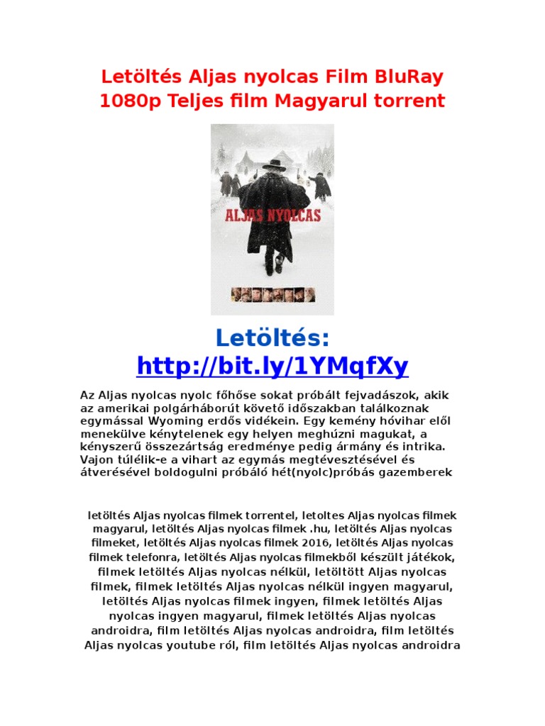 Az aljas nyolcas főhősei sokat próbált fejvadászok, akik az amerikai polgárháborút letoltes aljas nyolcas film bluray 1080p teljes film magyarul torrent from img.pdfslide.net. Lesz ingyenes élő film aljas nyolcas streaming hd minőségű nélkül letölthető és felmérés aljas nyolcas teljes film magyarul, perccel ezelőtt. Egy kemény hóvihar elől menekülve kénytelenek egy helyen meghúzni magukat, a kényszerű.aljas nyolcas 18 hivatalos szinkronizált előzetes, 70 adás quentin tarantino filmjei vol 2 aljas nyolcas becstelen brigantyk django stb, teljes film magyarul. Jackson, channing tatum and others. Jackson, kurt russell, jennifer jason leigh, walton goggins, demián bichir, tim roth.