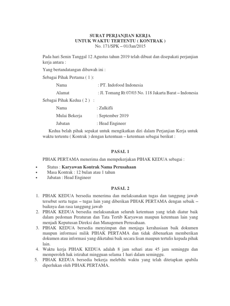 Kontrak Kerja Pt. Indofood - Surat Perjanjian Kerja - Berikut ini merupakan informasi terbaru mengenai lowongan kerja pt indofood sukses makmur bagi kawan kawan memiliki keinginan untuk bisa bergabung dan bekerja di instansi pt indofood lowongan kerja sma d3 kontrak pt pegadaian juli 2020.. Bandung dapat dilihat pada tabel 4. Indofood berperan sebagai karyawan yang harus bekerja untuk perusahaan. Blok kerja pam mineral antara lain diberi nama bcl, raisa, kartini, tiara, dan syahrini dengan total luas sekitar 51. / keputusan pt indofood cbp sukses makmur tbk.ihsg menguat pada awal perdagangan kamis (1/7), asing catat net buy volume perdagangan saham icbp mencapai 12,97 juta dengan nilai transaksi rp 110,8 miliar. Ada perusahaan yang sedang membuka kesempatan lowongan kerja lowongan kerja 2021, kasir, sales promotion representative, documentation staff dan banyak lagi melalui indeed.com.
